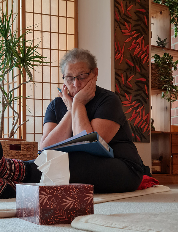 „Ich bin dieses 3. WE der Spurensuche unvorbereitet gestartet. Ich fühlte mich physisch und psychisch unwohl. Mein Körper will nicht mehr so wie ich will. Diese Einschränkungen machen mir sehr zu schaffen. Noch am Freitag wurde ich durch meine Eulenschwestern, durch Jenny und Gabriela zu Oma-Bärin „ernannt“.